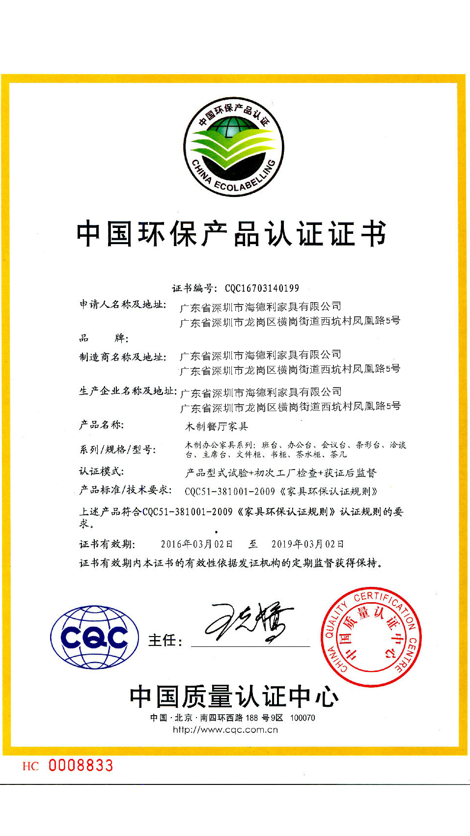與餐廳家具廠家海德利家具簽訂供貨合約預付定金安排生產。